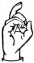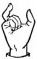 На ћирилици написано КАЋА БРЧИЋ састоји се из 9 слова [?]. Исписано ћириличном једноручном азбуком за глувонеме: